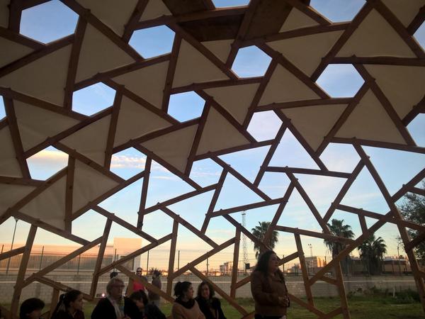 A partir de las experiencias acumuladas en el taller infantil de geometrías geodésicas se empezó a planificar el montaje de una segunda estructura, esta vez en madera.